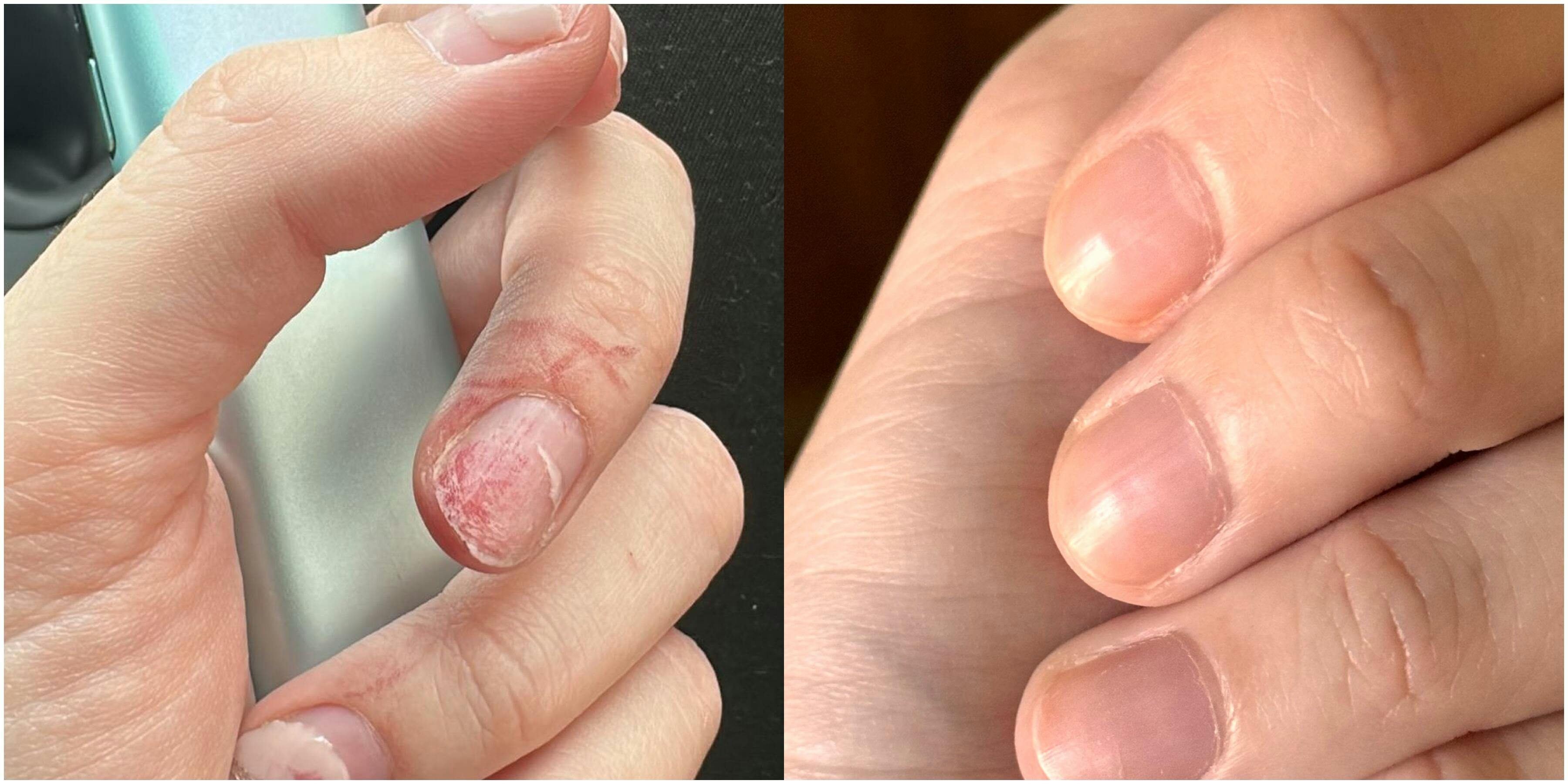 Vă las atașat poze before și after. Vreau să specific ca acea “uscăciune” în zona cuticulei o aveam de aproximativ 1 an și nu trecea cu nimic. Am zis să dau o șansă și acestei soluții. După aproximativ o lună de aplicare, cuticula mea e “ca nouă”. Specific ca m-am ținut de tratament și l-am aplicat chiar și de 2-3 ori pe zi…